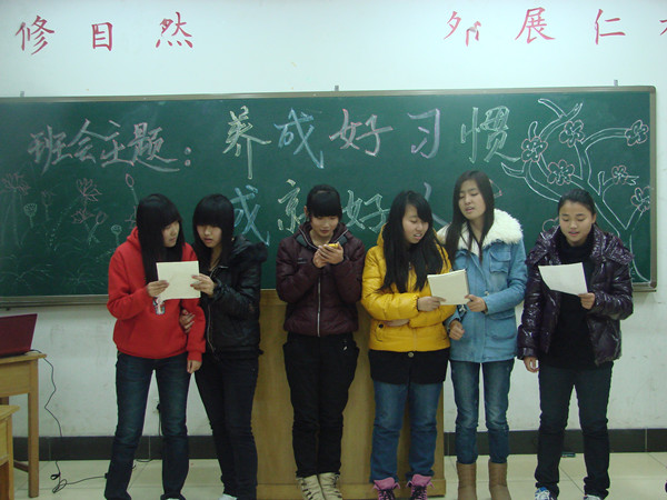 12月2日晚,伴随着同学们慷慨激昂的朗诵,管理系2012级各班组织开展了“养成好习惯,成就好人生”主题班会。