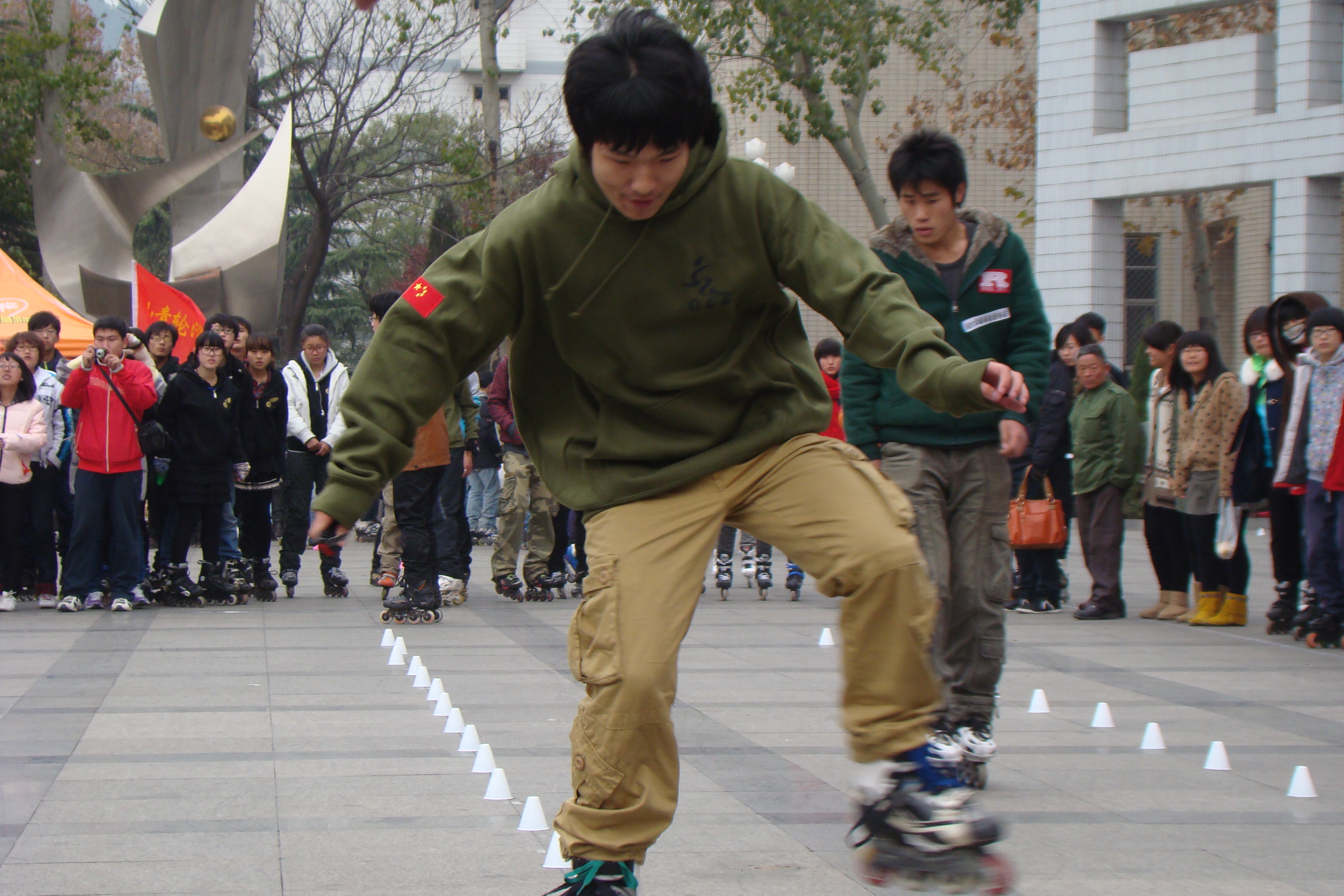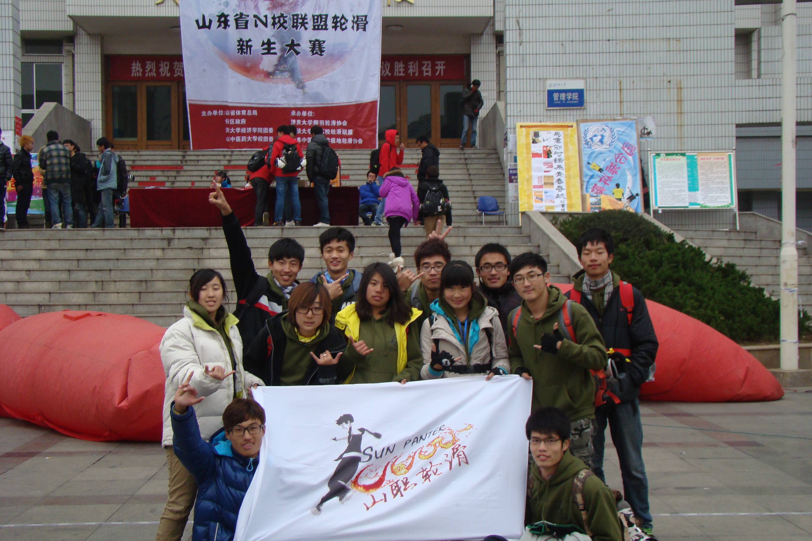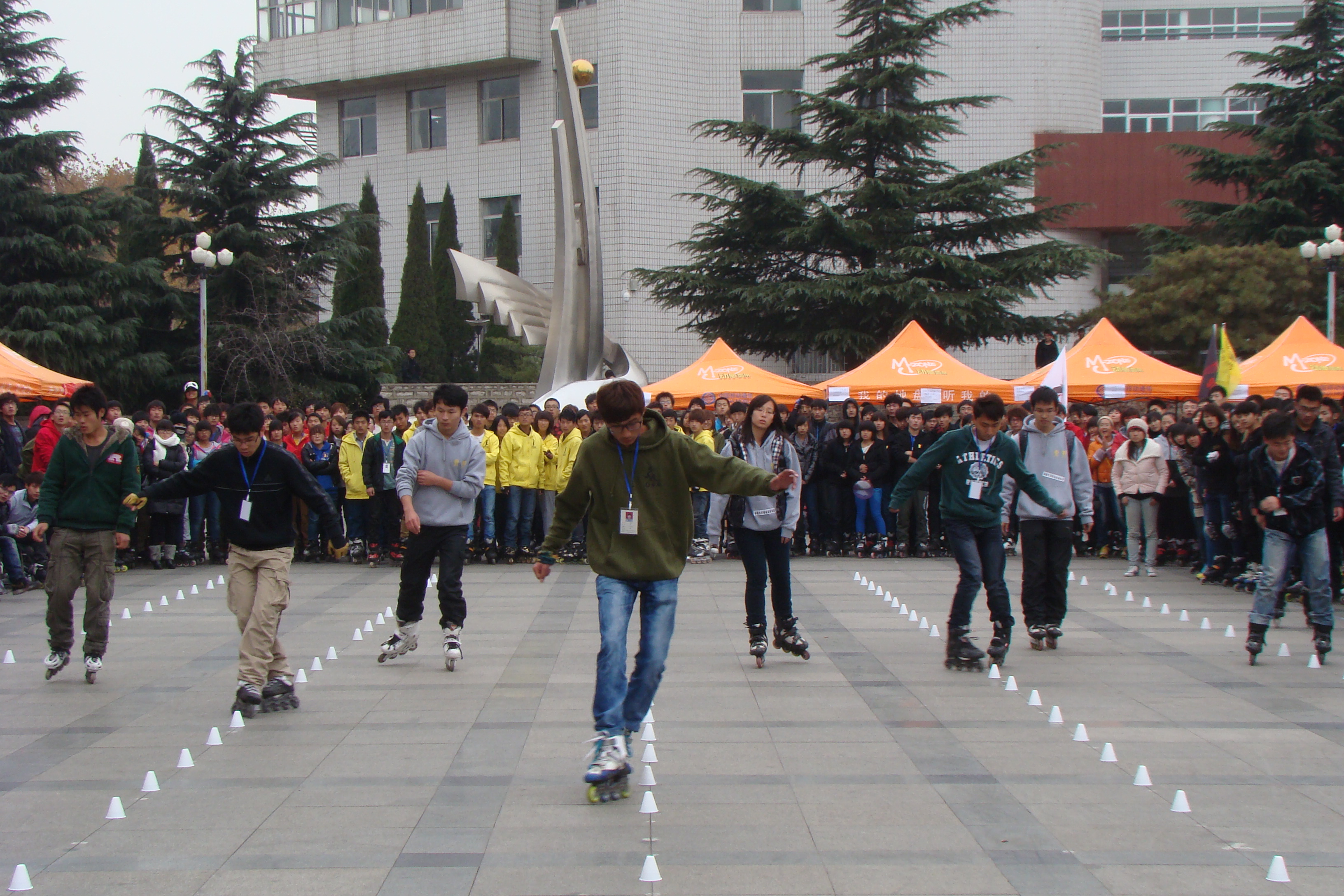 上午九时,各大高校代表队齐聚泉城公园,大家济济一堂,所有选手整装待发一路滑去济南大学。上午十时比赛正式开始了。本次交流大会共分为两个部分,既个人竞技和团队集团赛的切磋表演。个人赛分为花式过桩、速度过桩、竞速接力、和花样跳滑四项内容,各高校新生选手一个个使出看家本领。花式过桩的潇洒自如;速度过桩的身轻如燕;花样跳滑的行动自如,健步如飞将现场的气氛推向一个有一个高潮,观众们的欢呼声是一浪高过一浪,最叫人称觉的是团体集体赛,每位选手优美的身姿,高超的技术,过硬的本领将全场气氛推到了高潮。之后是各高校的交流环节,各高校选手积极参与,不分你我,交流过程中大家虚心学习,相互切磋,其乐融融,最后我们学校取得了例年来最优异的成绩“团体第二”。
