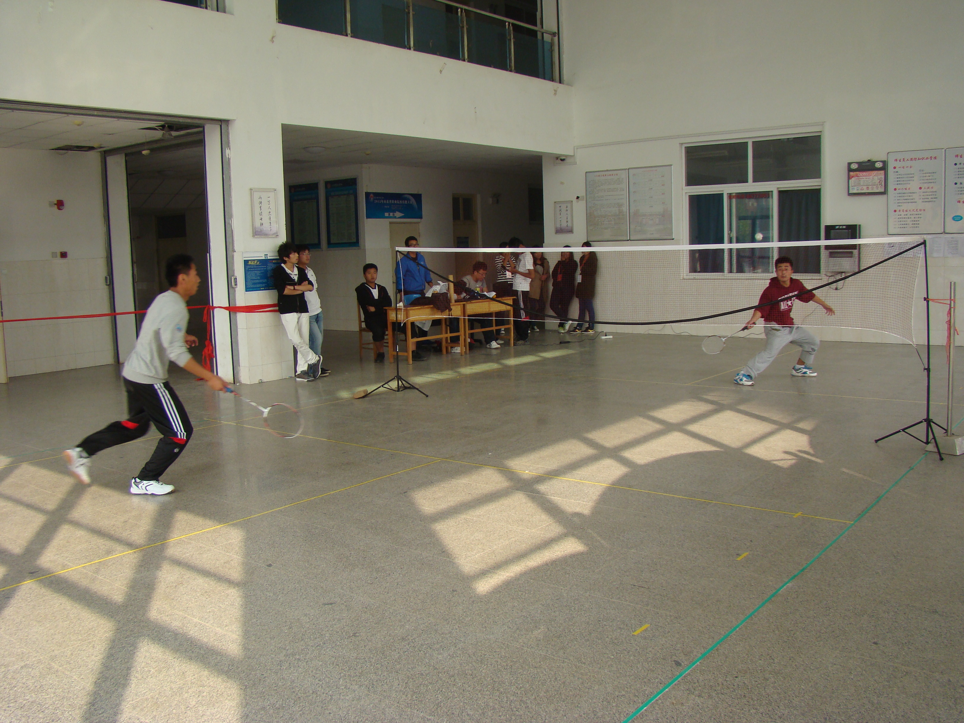 上午八点五十分场地上已是人山人海,九点在震耳欲聋的欢呼声中拉开了比赛的帷幕。比赛采取现场报名的方式,同学们竞相参加,踊跃的报名,现场气氛十分火热。比赛精彩万分,竞争激烈,扣人心弦。比赛采取淘汰制,每场比赛三局两胜,每个选手只有一次机会,因此更增加了比赛的激烈精彩程度。赛场上男选手生龙活虎,女队员小巧灵活,各路精英尽显风采,上午的时光在比赛不知不觉中逝去。下午决赛正式开始,晋级的选手们使出浑身解数,积极参与比赛,网前吊球、杀球、扣球等相当精彩,选手配合相得益彰。下午五点羽毛球协会新生选拔赛圆满落下帷幕。