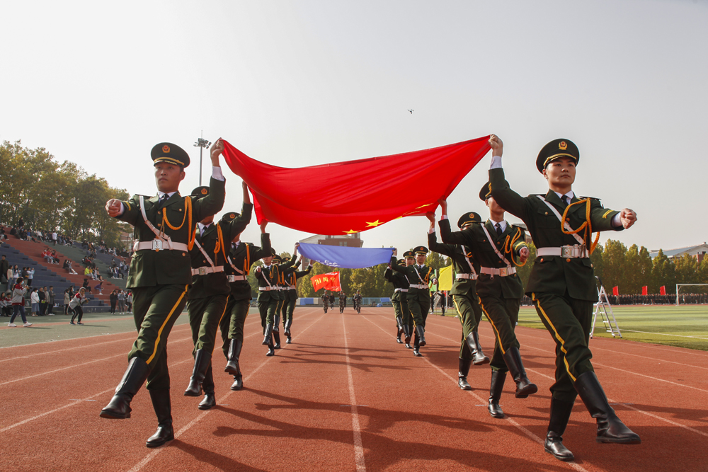 2020级新生在站军姿、整内务、学技能、走队列、唱军歌等丰富多样的军训项目中感受军威、锤炼身心、提升自我,整个军训生活紧张而又充实。
