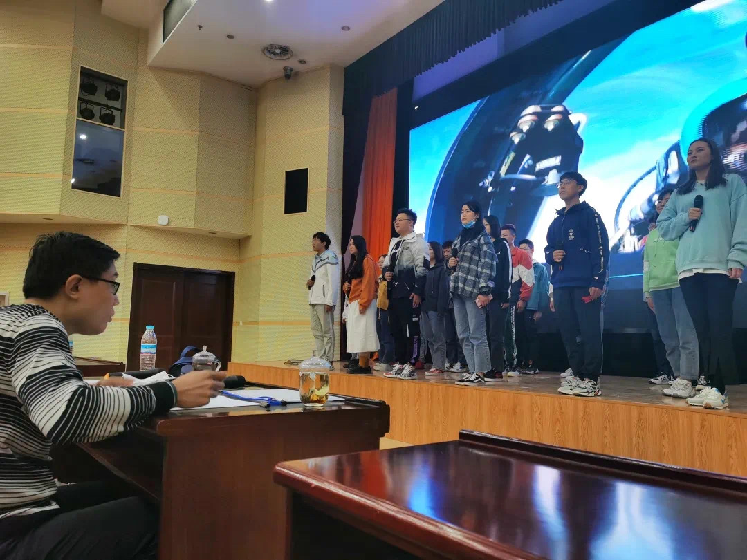 培训会议中,王智勇老师为大家教授了普通话发声技巧,包括五音调值、发声气息等,并且与台下的同学们互动,一起感受普通话的发声技巧。随后,许洋老师在培训会议中为晚会主持人的台风与职业操守问题进行细致指导。