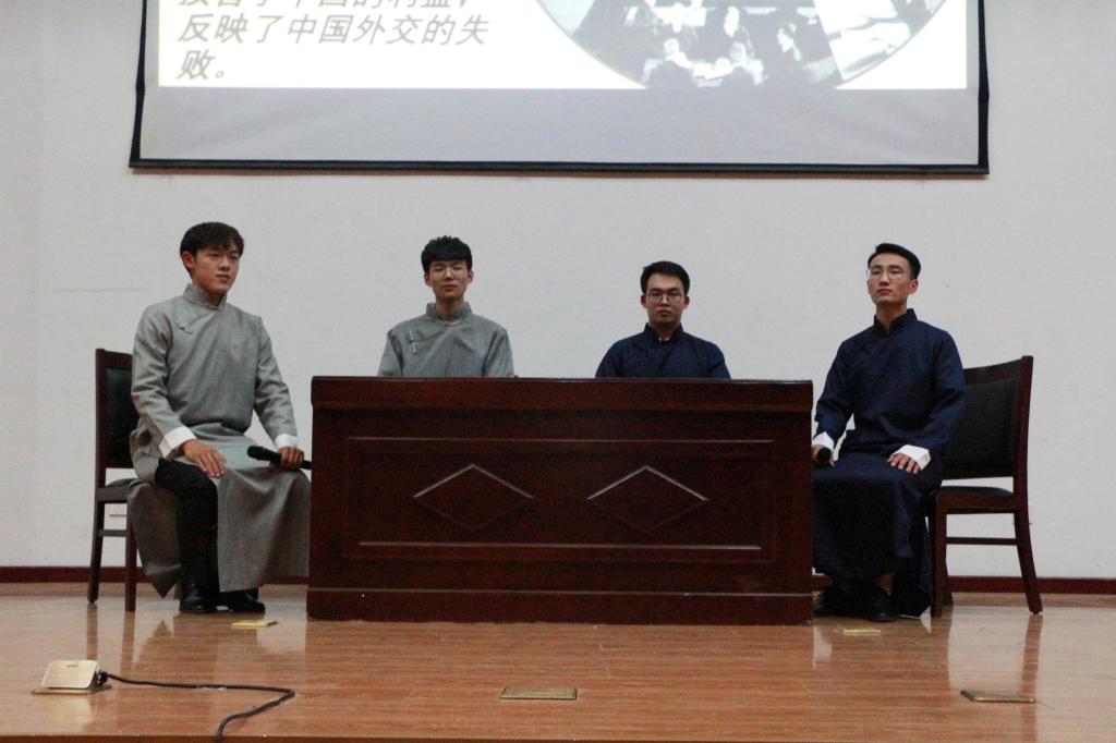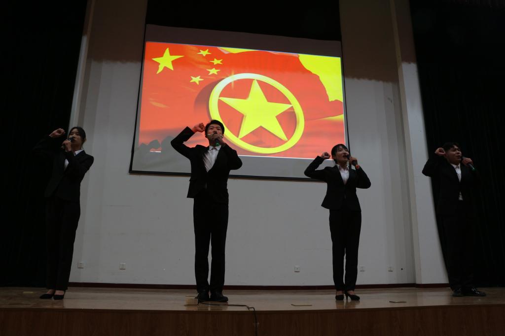 朗诵会在《青春五四》诗篇中拉开序幕,点燃了全场激情;随后谢冰心、刘家乐等人朗诵的《永不忘记的一天》,让我们重回到了那股爱国热潮之中。《五四之火》《祖国啊我亲爱的祖国》《中国报告》等诗篇,通过师生们饱含感情的朗诵,激起师生广泛的爱国之情。尤其是李书欣等人朗诵《穿越时代的对话》,让我们思绪穿越回了华夏五千年的悠悠岁月中,聆听那一行行千古绝唱。在《献给高铁建设者的歌》中,通过高歌和刘树畅抑扬顿挫地朗诵,使我们深深被“工匠精神”所感染。《盛世中国》的朗诵中,朗诵者用高水平的诵读技巧、饱含深情的内涵诠释将整场演出推向了高潮,让我们感受到国家在富强路上越走越远。