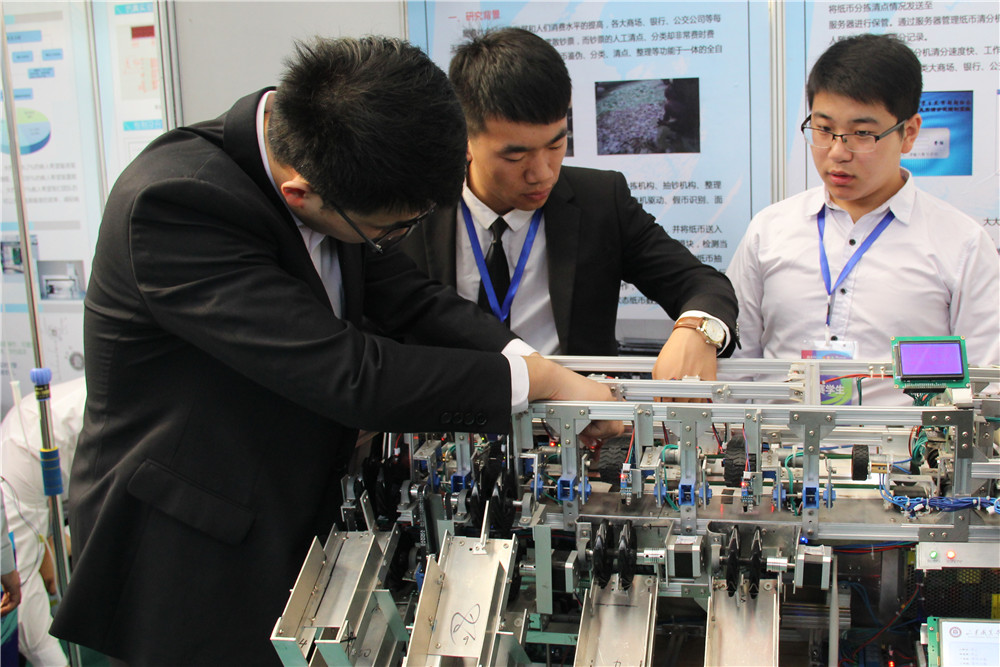 本届“挑战杯”大赛以“青春新动能 挑战创未来”为主题,全省共有88所高校参与其中。经过前期初赛、复赛我院铁道机车与机电装备系大学生发明创新协会提报的上述两件作品从全省5000余件参赛作品中脱颖而出杀入总决赛。参加总决赛的筹备工作得到了铁道机车与机电装备系师生的大力支持,本次两件获奖作品均由张为宾老师指导,一等奖作品“老有所椅”多功能护理轮椅病床由李明智、勾钰水等同学制作完成,它是一个能够进行床和轮椅组合变形的多功能护理轮椅病床,实现了“十秒钟床变轮椅”,可以进行病人左右翻身、坐起、屈腿、排便等功能,以及进行远程控制和护理,解决许多脑瘫、脑梗、脑血栓等老年长期卧床患者护理病人过程中的诸多不便。该作品以科学的设计、完善的功能得到大赛专家组的一致肯定,甚至获得相关医疗期开发厂商关注。三等奖作品全自动纸币清分机由吕志浩、吴鸿远等同学完成该机器综合点钞机验钞机清分机多种功能于一身,利用传感器技术,实现了六种面值的纸币的高效清分,该作品设计精巧、运转流畅,成为赛会上人气最高的作品之一。