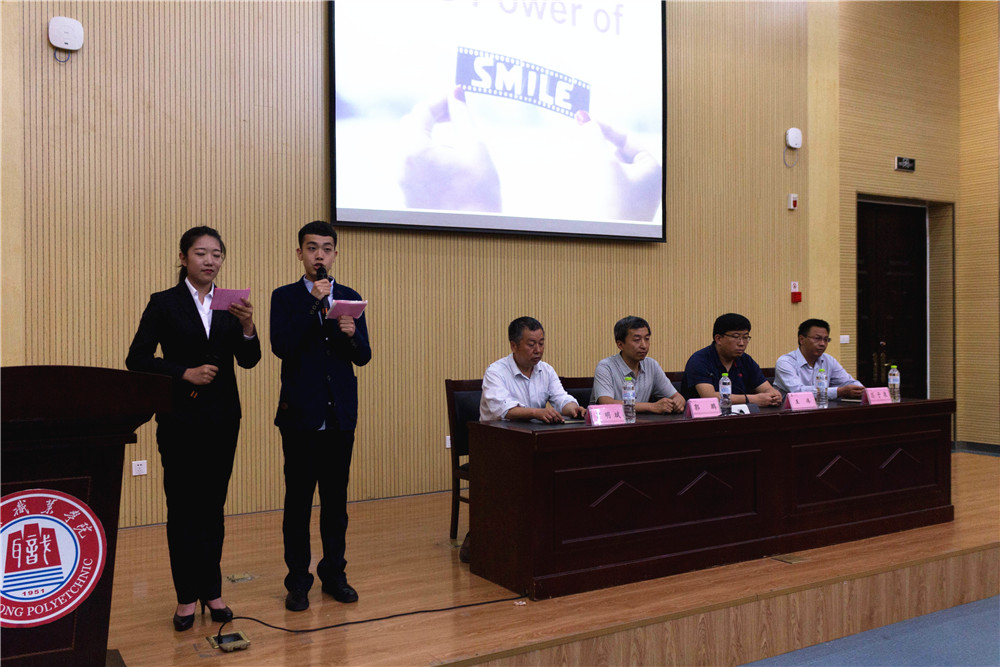 On the afternoon of May 18, the English Speech Contest entitled “The Power of Smile” launched the First English Culture Festival of Shandong Polytechnic, which was held in the East Lecture Hall. Guo Peng, vice president of the college, attended the opening ceremony and delivered a speech. The distinguished guests present include Mr. Jia Mingbin, dean of the Department of General Studies; Mr. Wang Wei, secretary of the Communist Youth League; Mr. Lv Ziquan, director of the International Exchange Center.
