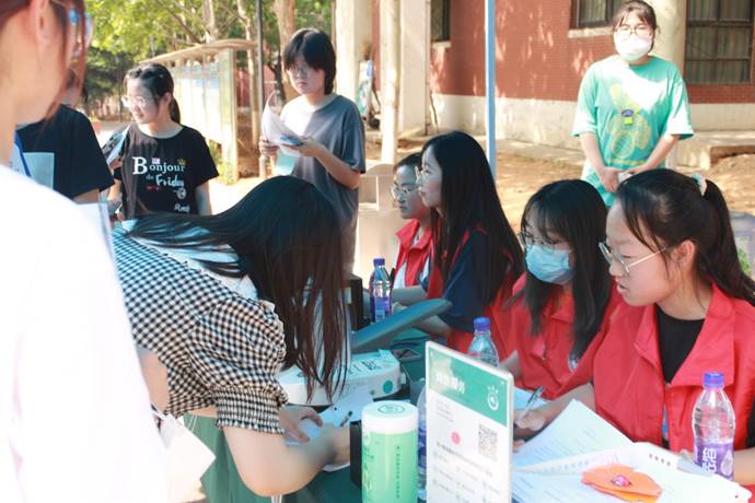 在疫情常态化防控的前提下,本次献血活动分书院分批次进行,确保人员分流。在献血活动现场,各项准备活动有序进行,无偿献血者来到献血车前,进行献血前的登记工作,填写新冠疫情调查表、测量血压、采血检验等工作。活动也为参与的同学准备了一杯糖水。一杯糖水,一份安心。为献血进行再次提供能量和动力。