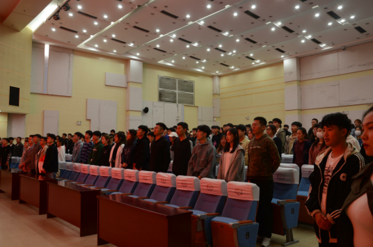 学生会主席白伟哲主持此次会议。会议开始,全体同学起立,唱国歌。