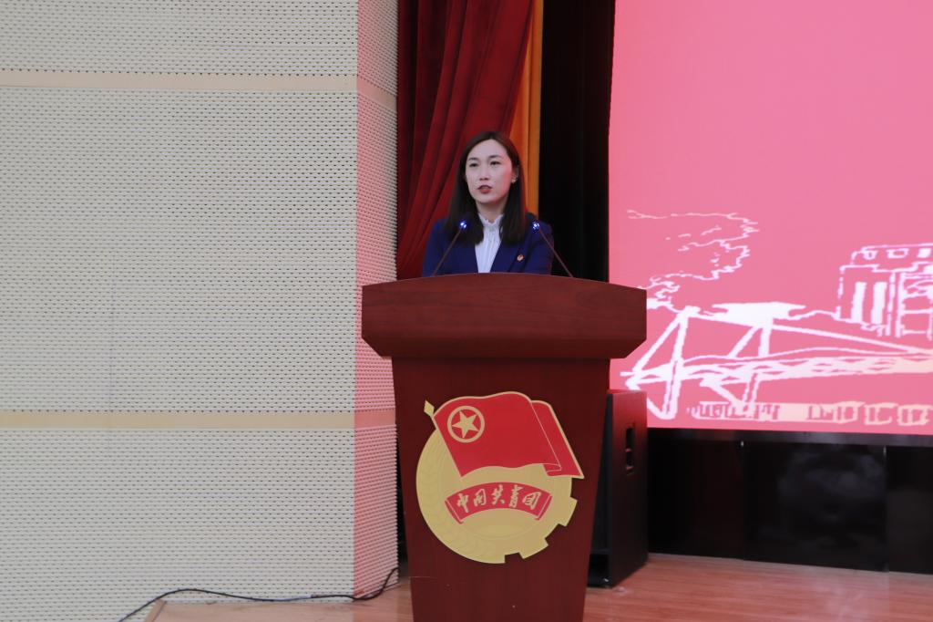 团委副书记宋高妮代表学校团委向广大青年致以节日问候,向新入团同学们表示祝贺,并借此机会向全体团员提出四点希望和要求:一要点亮青春的理想,理想指引人生方向,信念决定事业成败;二要有激昂奋斗的旋律,只有进行了激情奋斗、顽强拼搏的青春,才会留下充实、温暖、持久、无悔的青春回忆;三要有澎湃创新的动力,青年是世界上最富活力、最具创造性的群体,理应走在创新前列;四是有淬炼斗争的精神,要带头迎难而上、攻坚克难,做到不信邪、不怕鬼、骨头硬。