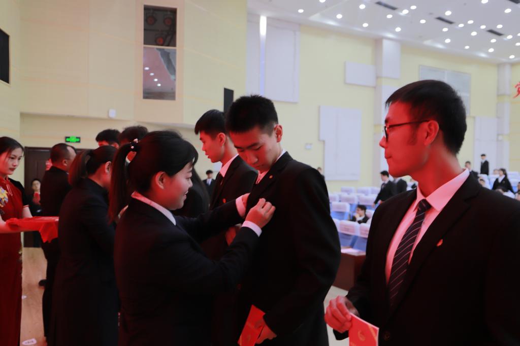 入团仪式在庄严的国歌声中拉开帷幕。团委副书记齐真宣读了学校《关于发展2023年上半年新团员的决定》。各书院团总支书记为43名新团员颁发团章,佩戴团徽。