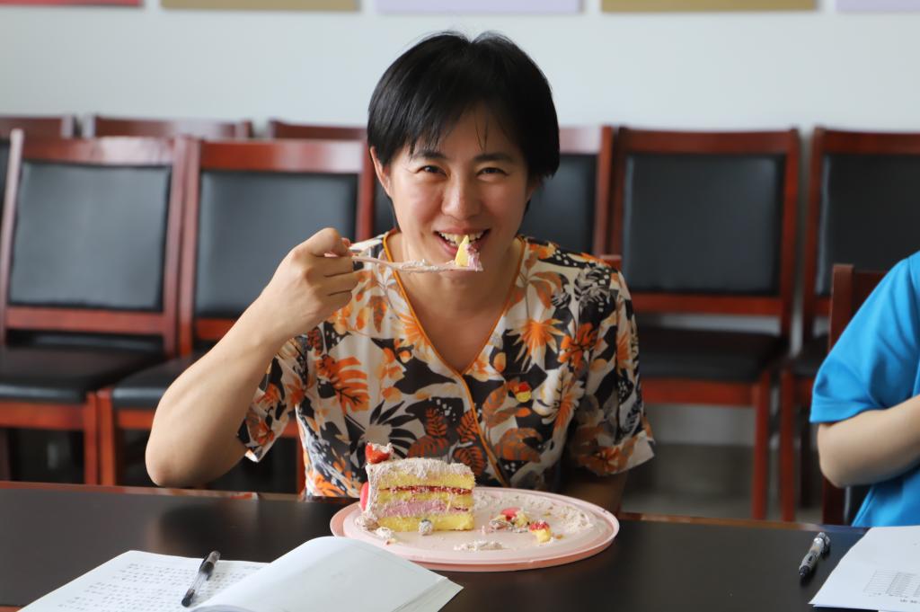 学团党支部全体党员同志共同点燃生日之火,切分生日蛋糕。