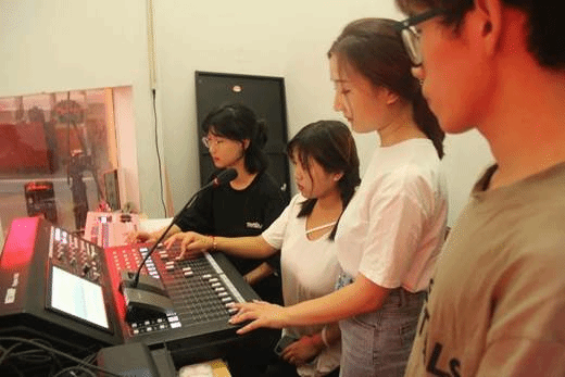 宣传部和广播电视台的同学们在东报告厅进行调音台及灯光、广播站设备、电视台设备等大众媒体的培训。