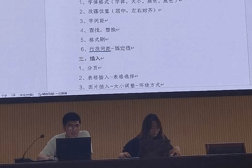 同学们在东报告厅进行Word、Excel、PPT办公软件和PS等新媒体软件的使用和学习。