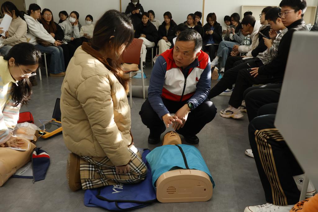 此次培训分为理论学习、实操训练和考核三个环节。理论学习阶段,专业人员通过讲解心肺复苏、气道异物梗阻处理、创伤救护、常见急症和意外伤害处理、自动体外除颤仪(AED)的使用等知识,为学生带来了生动且实用的医学急救知识培训。随后,同学们在红十字会老师的指导下进行了应急救护实操练习和现场考核。考核通过的人员取得红十字会颁发的心肺复苏培训证书、创伤救护培训证书、红十字救护员(初级)证等相关资格证。