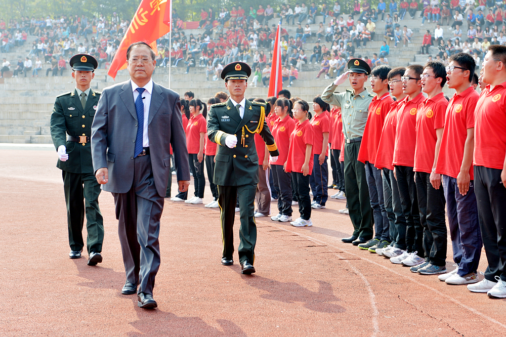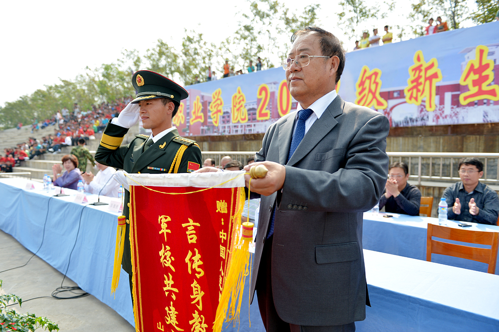 邓洪基代表学院向承训部队赠送锦旗,并发表了热情洋溢的讲话。他在讲话中指出,开展学生军训工作,是全面贯彻党的教育方针,推进素质教育的一项重要内容。通过军训的洗礼,新同学们学习了基本的军事知识和技能,提高了国防意识,激发了爱国热情,增强了组织纪律性和集体主义观念,培养了艰苦朴素、吃苦耐劳、乐观向上的精神品质。同学们也以实际行动和优异的成绩交上了入学后的第一份合格答卷。