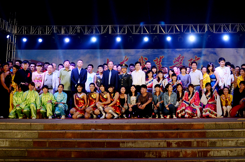 晚会现场高潮迭起,掌声欢呼声不绝于耳,军训的教官们用整齐划一的《养成动作科目展示》展现了当代军人军事过硬、作风优良、纪律严明的飒爽英姿;工会李明主席的独唱《月之故乡》仿佛让我们看到了一个不知所终的游子,正柔肠寸断地沉浸在对乡愁的倾诉之中;罗磊、陈伟、王少妮、侯伟四位老师用热情而高亢的配乐诗朗诵《学会感恩》表达了老师们对全体新同学“拥抱生活、感恩社会”的殷殷期望;社团联合会的街舞协会和武术协会分别为同学们带来了动感十足的街舞表演《卧虎藏龙》和博大精深的中华武术表演《男儿当自强》;学生处郭处长以一首《当你的秀发拂过我的钢枪》唤起了军训团全场教官和参训同学的真挚情感;男声二重唱《父亲》用动情的歌声和新生报到中拍摄的剪辑视频深深的打动了在场的每一位观众,父亲的大爱无言让在场的同学们不禁潸然泪下;学院健美操队激情四溢的竞技健美操表演将整台晚会推向了最高潮。最后,晚会在欢快、热烈的歌曲联唱《山职欢迎你》中圆满落下帷幕,学院领导走上舞台与晚会工作人员亲切握手并合影留念,祝贺演出圆满成功。