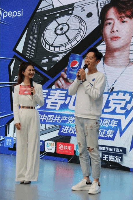 仪式最后,山东百事可乐山东行销公司总经理吕学军,济南工程职业技术学院团委书记刘晓平,山东广电传媒集团有限公司党委副书记、总经理张先等领导嘉宾上台,共同开启“青春心向党,唱响新时代”庆祝中国共产党成立100周年进校园快闪征集暨百事校园最强音山东赛区活动。