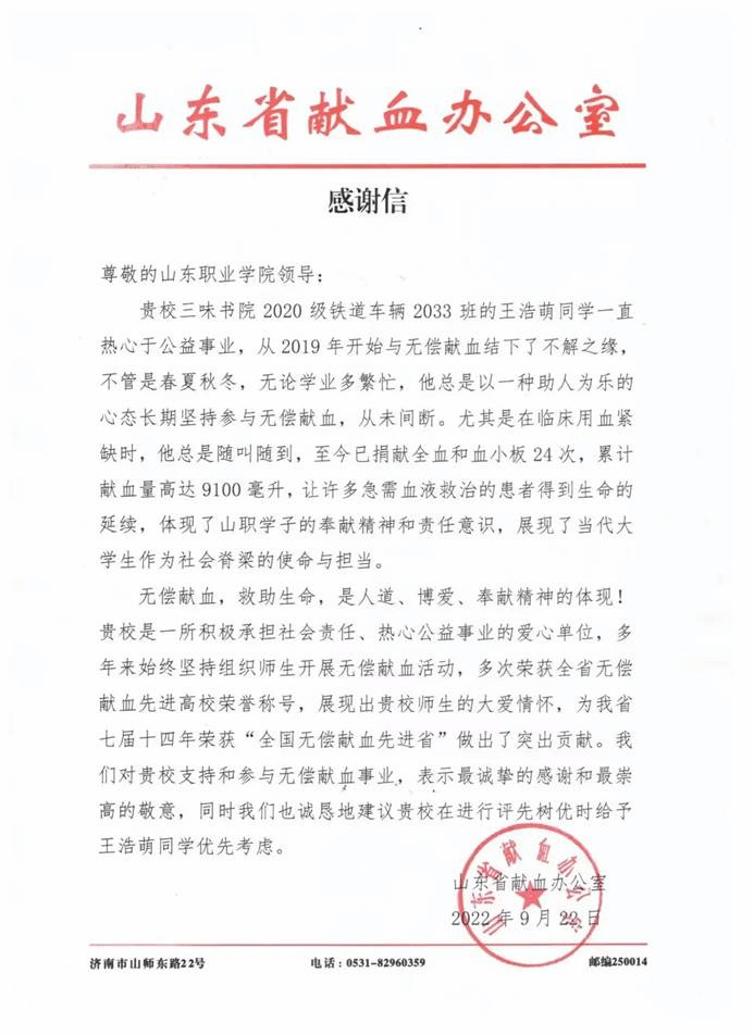 血是生命的源泉,爱是生命的曙光。献血是每个健康公民应尽的社会义务,让我们向王浩萌同学学习一起无偿献血,挽救生命,让爱升起,照亮生命,守护我们共同的城。
