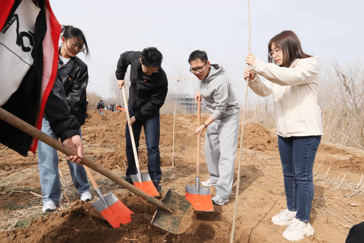 在校园农场植树现场,大家分工协作,配合默契,从挖坑整地、栽植树苗,到扶正压实、覆盖地膜,各道工序一丝不苟,整个植树现场呈现一派热火朝天的劳动景象,给春意盎然的春天增添了一抹新绿。师生以行动传递了“十年树木,百年树人”的教育理念,将劳动实践与育人初心紧密结合。