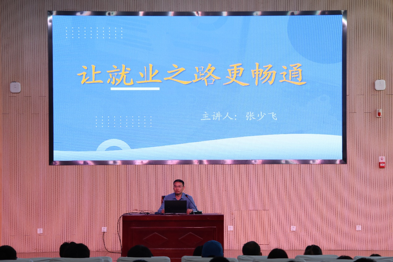 张少飞以《让就业之路更畅通》为主题,运用精准数据,直观呈现了当下的就业现状,深入剖析了毕业生总量攀升、行业需求分化等形势。他强调,就业是永恒的课题,个体奋斗应当与强国征程同频共振。此外,张少飞还为同学们提供了珍贵的职业规划建议与就业指引,鼓励同学们将个人发展与国家需求紧密融合,在国家战略需求建设中贡献自身力量。讲座最后,张少飞向同学们提出三点希望:一是强化心态建设,乐观应对挑战;二是重视强身健体,筑牢健康根基;三是提升服务意识,在奉献中实现价值。