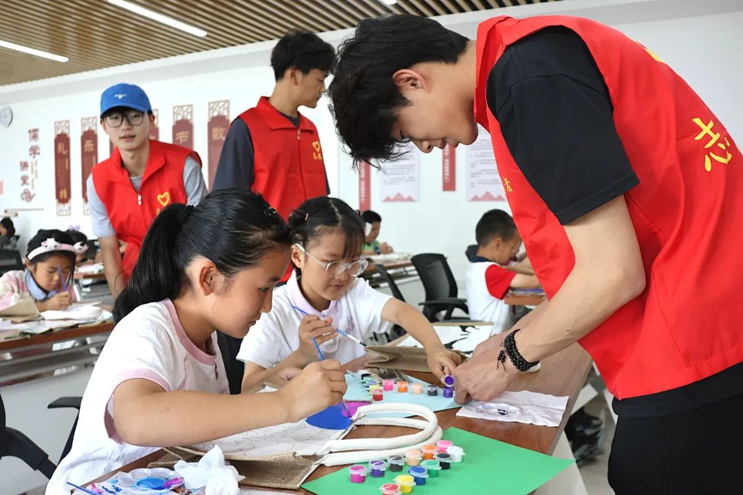 创作现场,小朋友们手握画笔,按手提袋上的图案作画,志愿者们靠在孩子们身边,耐心指导着线条勾勒,不时递上纸巾擦去他们弄脏的脸颊。调色盘里的颜料被不断混合出新的色彩,原本空白的手提袋渐渐“长”出可爱的小动物、梦幻的城堡、绽放的花朵。在志愿者的指导下,一幅幅童趣图案渐渐完成,一旁的家长们围拢而来,眼里满是惊喜与赞叹。