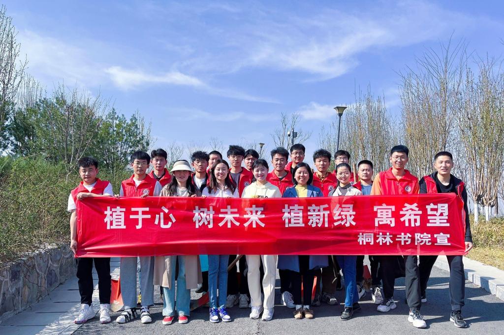 3月12日,桐林书院组织师生深入将山山地公园,开展“践行双碳战略 共建生态环境”义务植树活动,书院辅导员和部分学生志愿者们参加活动。