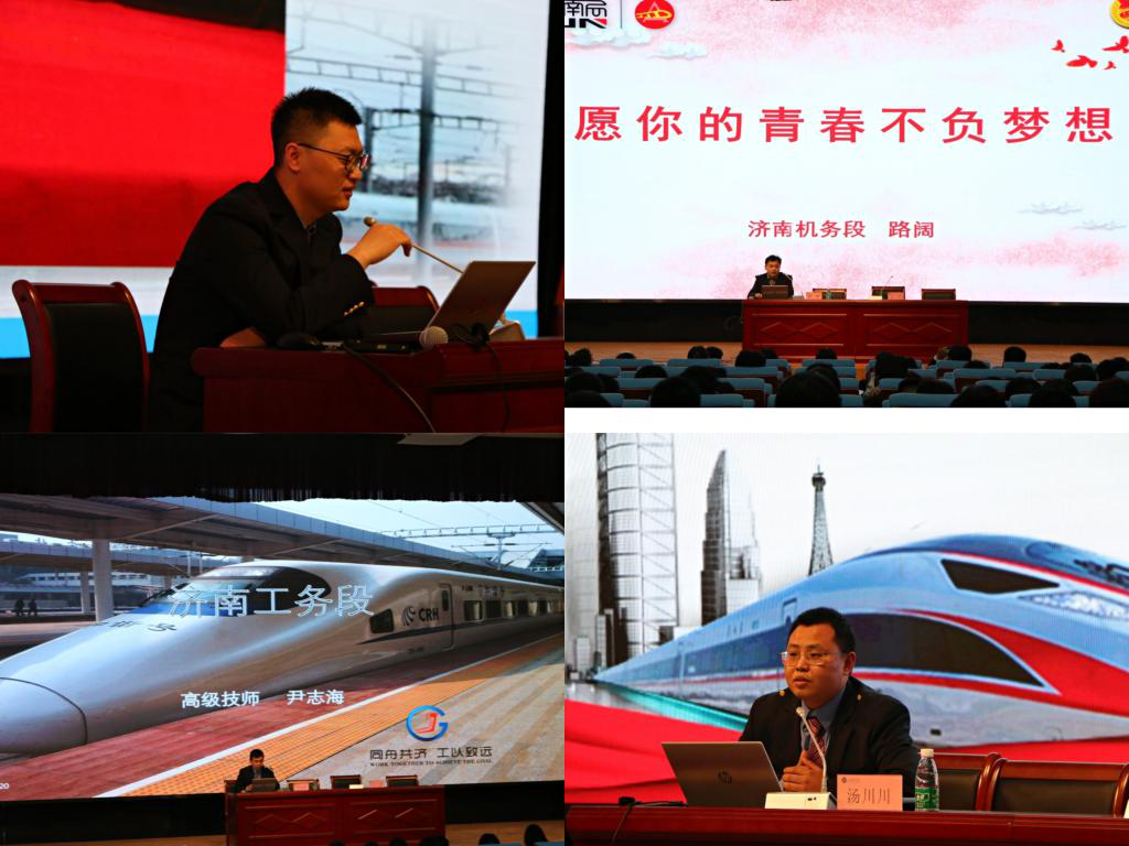 4月20日,活动邀请到学校优秀校友、中国铁路济南局集团有限公司青年技能岗位能手汤川川、尹志海、路阔、李魏林为铁道相关专业学生做报告。他们立足自己的学习经历和工作岗位,分别用大学、职业、榜样、理想这四个关键词引起同学们进一步思考对铁路职业的选择与认知。校友现身说法,鼓励大家勇挑担当与责任,尊重自己的选择,并努力养成良好的行为习惯和自我控制能力,扎根铁路、努力奋斗,才能成为工作岗位上的佼佼者。