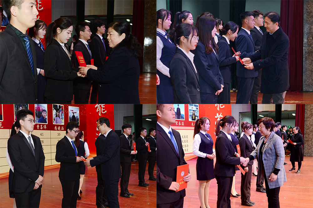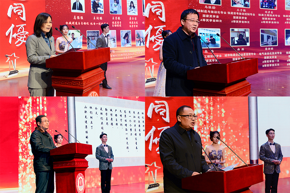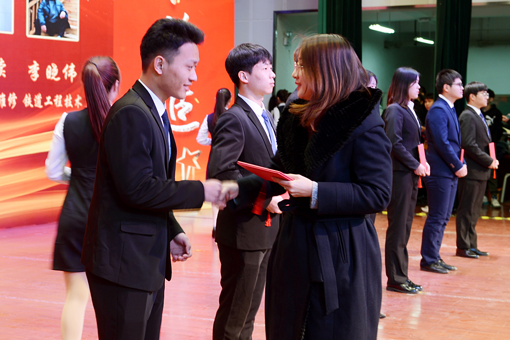 中国铁路济南局集团有限公司团委书记胡述沛、济南轨道交通集团运营公司人力资源部副部长刘润泽,院长秦河、党委副书记徐冬、纪委书记祝介安、全国“五一”劳动奖章获得者李增足教授、全国模范教师艾菊兰等领导和嘉宾向获奖同学颁发荣誉证书。