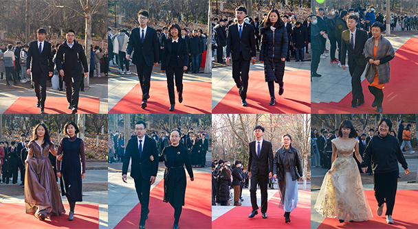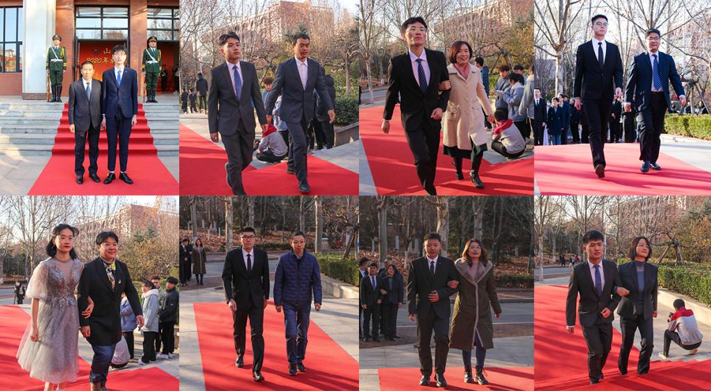 师生风采展环节,由获得国家奖学金、省政府奖学金、泉城奖学金的同学与受邀老师一同走过红毯,在励志墙郑重签名并合影留念,共同记录这一庄重而又难忘的时刻。