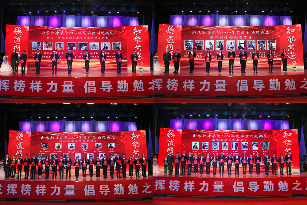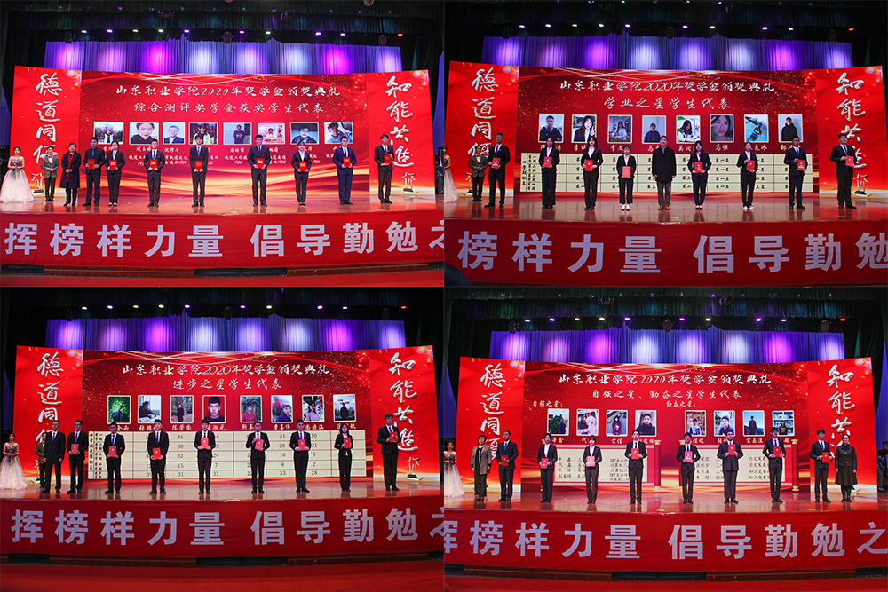授予290名同学“山职之星”荣誉称号,授予84间宿舍“2020年全奖学金宿舍”荣誉称号,特别授予18名同学“山职之星”突出荣誉奖章。