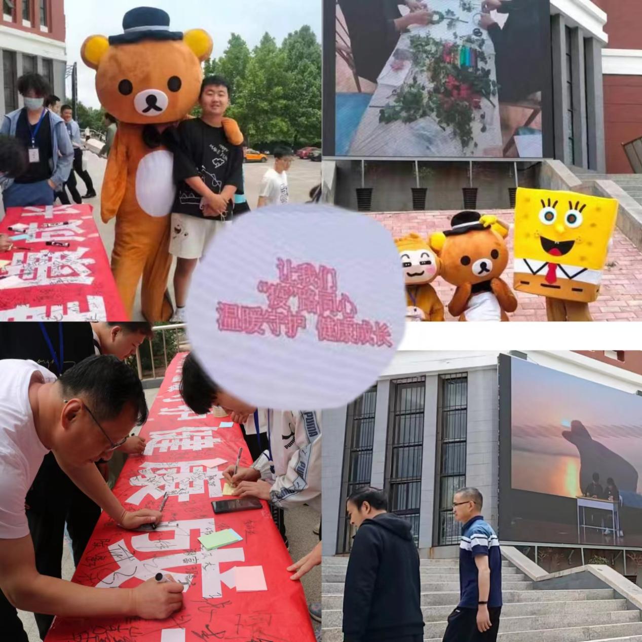 5月25日中午,大学生心理健康协会在餐厅门口举行了“‘疫’路同心 温暖守护 健康成长”宣传活动,通过条幅签字、填心愿卡、拥抱玩偶等活动呼吁同学们爱自己、爱大家、让爱充满校园。