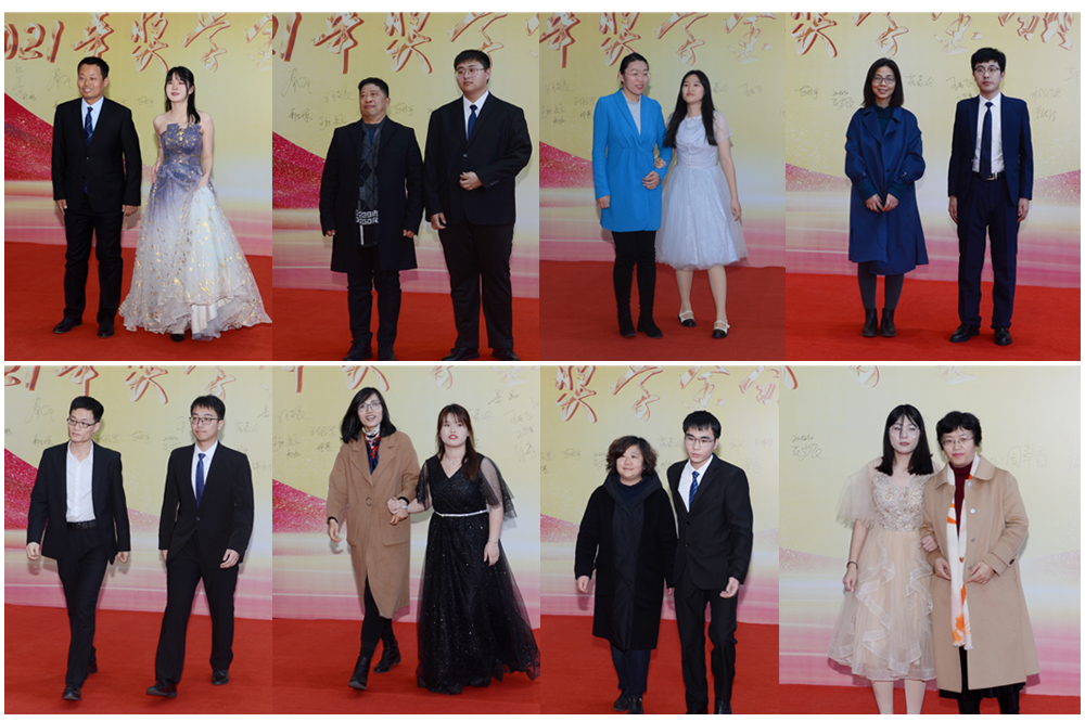 下午2:30,一位位身着盛装的国家奖学金、省政府奖学金、泉城奖学金及“山职之星”荣誉奖章的获得者与受邀老师一同走过红毯,在励志墙签名并合影留念,师生共享这一欢乐又庄重的时刻。这种仪式感很强的入场方式,增强了同学和老师的成就感和庄重感,现场掌声、欢呼声不断。
