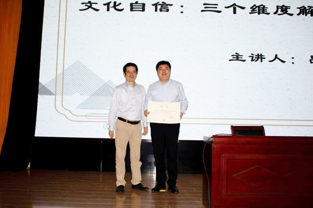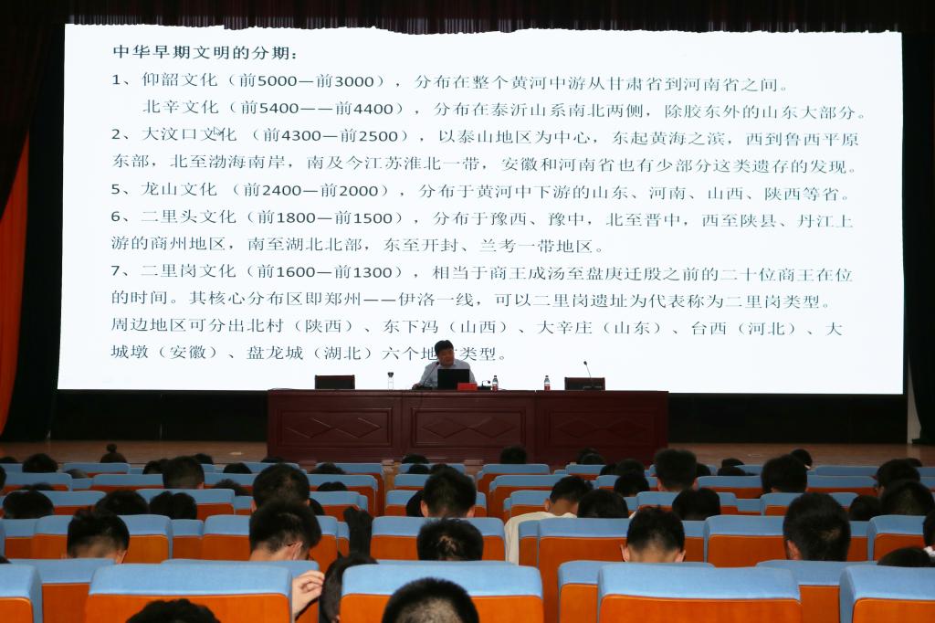 吕文明教授以《文化自信:三个维度解读中华优秀传统文化》为主题做了报告。他以2013年习近平总书记视察山东曲阜和2018年在全国宣传思想工作会议上提出的“四个讲清楚”为切入点,从长度、厚度、高度三个维度对中华优秀传统文化进行了解读,通过中华优秀传统文化的深厚土壤和历史积淀,引导师生共同感受中华优秀传统文化的魅力所在。