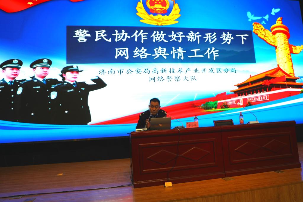 李寿明通过生动的多媒体形式、丰富的案例数据,就新媒体时代下的舆情态势、舆情应对技巧以及公安部门对舆情的监控等内容进行了详细讲解。他强调,新时代大学生要加强网络舆情鉴别能力,不信谣、不传谣、不造谣,坚定社会主义信仰,树立正确的价值观。