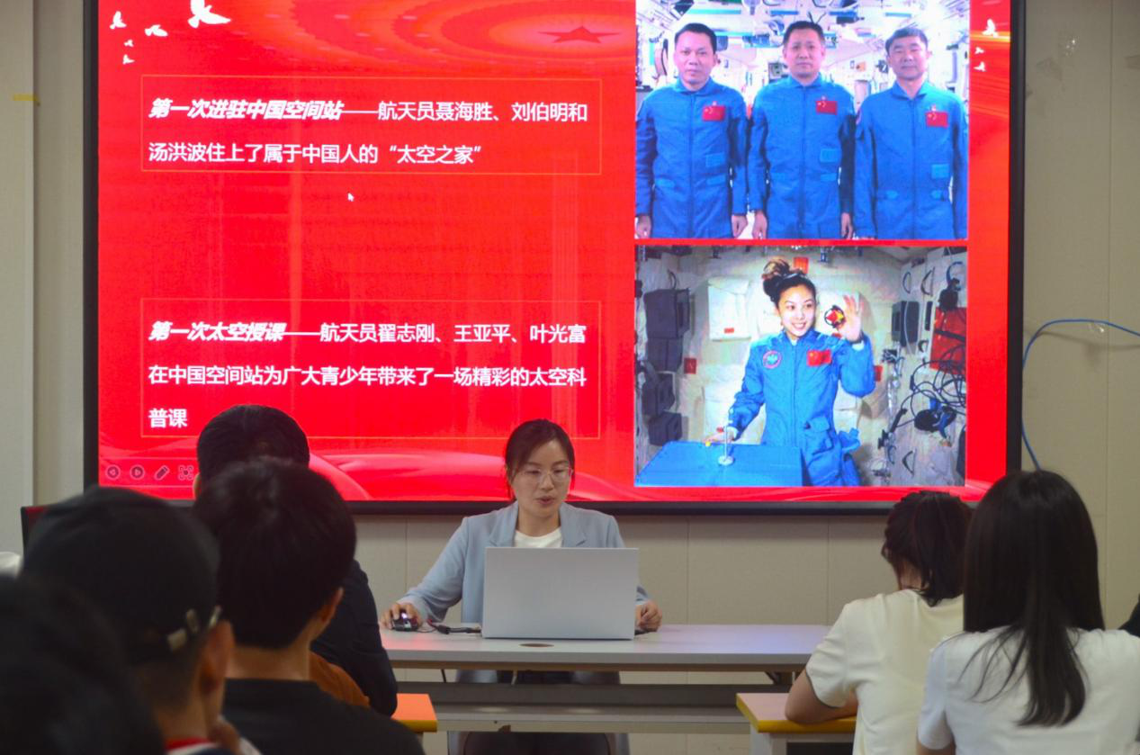 陈淑以《中国精神—载人航天精神》为主题,从中国载人航天发展历程以及航天史上一次次突破谈起,并以杨利伟、翟志刚等航天人为例向同学们讲述何为载人航天精神以及载人航天精神对大学生的启示。她强调,“特别能吃苦、特别能战斗、特别能攻关,特别能奉献”的载人航天精神赋予了当代大学生要矢志不渝地自主创新,勇攀高峰的动力,激励当代大学生要担当起党和人民赋予的新的时代使命任务。