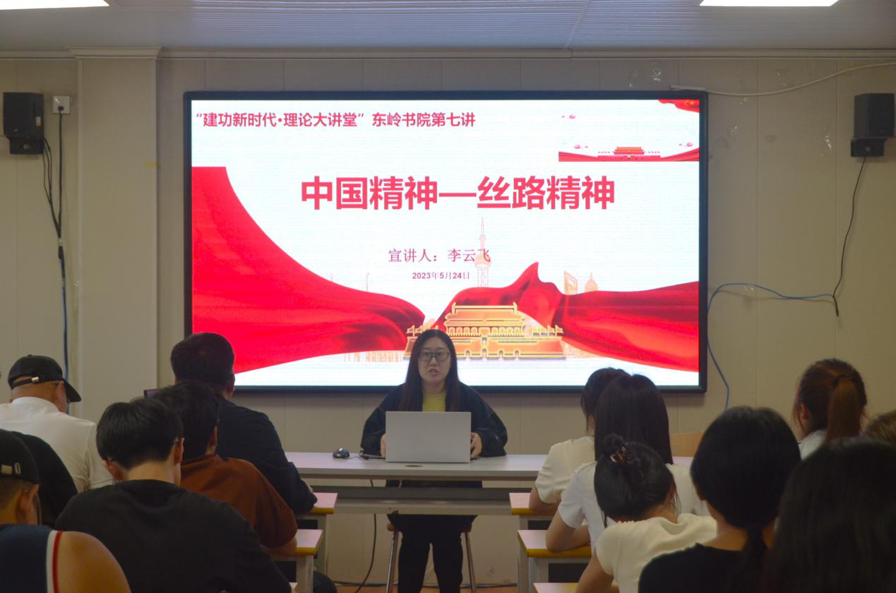 李云飞以《中国精神—丝路精神》为主题,带领师生回顾了“古丝绸之路”,深刻感悟丝绸之路古今发展历程以及延伸出来的“丝路精神”内涵,并重点讲解了“丝路精神”对于当代大学生的意义。