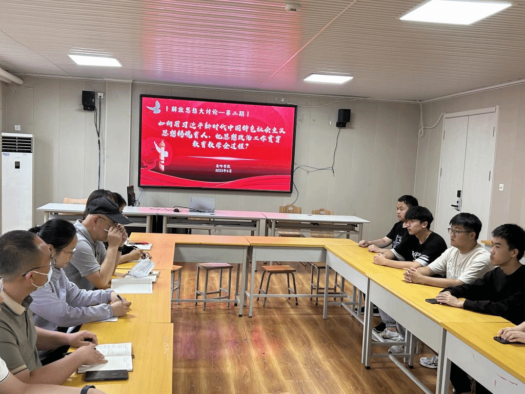 通过讨论,大家明白了为什么要解放思想,解放思想要解决什么问题,如何解放思想,得出必须用习近平新时代中国特色社会主义思想铸魂育人,把思想政治工作贯穿书院教育全过程。一是加强理论学习,坚持马克思主义指导地位,深入开展学习贯彻习近平新时代中国特色社会主义思想主题教育,学好读懂习近平总书记关于教育的重要论述、习近平总书记对山东的重要指示批示精神等学习材料;二是创新思想政治工作阵地和途径,采取线上线下相结合的方式做好新时期思政工作,用好微信公众号、抖音、微博等线上平台,线下通过党员工作站、党课、宣传板、团员大会、班会、团课等方式创新思政工作开展途径,同时还要坚持思政教育同志愿服务和社会实践相结合,通过红色教育基地开展思想政治教育;三是加强学校、家庭、社会教育力量的协同,要在思政教育中不断探索建立学校、家庭、社会协同育人网络,建立起思政教育长效机制。