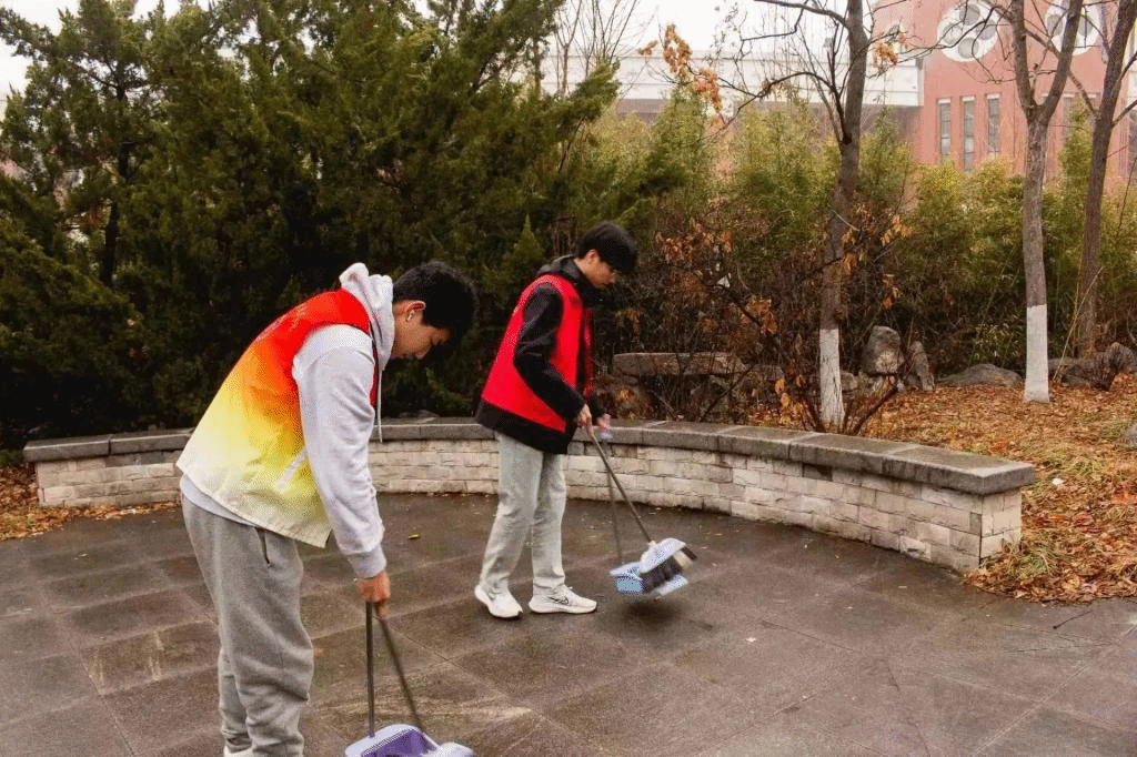 活动现场,同学们情绪高涨,干劲十足,对宿舍楼区域内的废纸、果皮等一一打扫,小道处,坐台旁,树木间,到处都有认真打扫的同学们。用扫把等对楼后晾衣区域进行了全方位打扫,用实际行动践行和发扬雷锋精神。