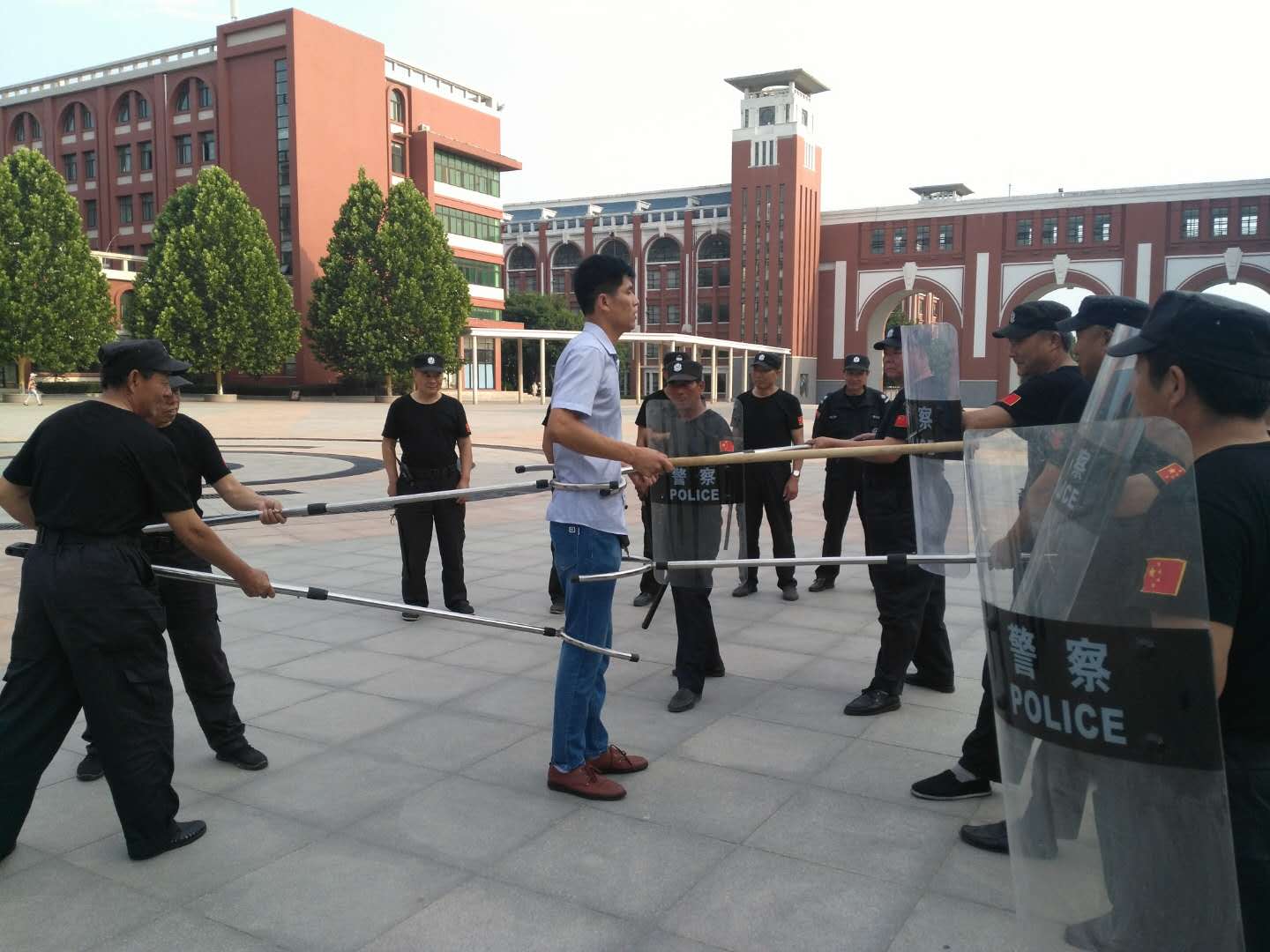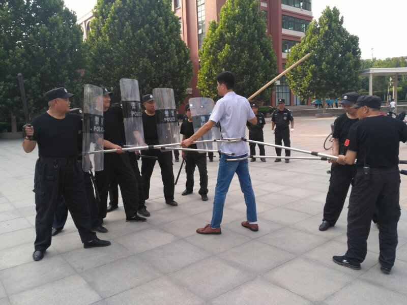 6月7日,我院组织开展反恐防暴安全演练活动。应急处突队员展示了钢叉、棍盾实战对抗和应对突发事件的整体阵型攻防变化的演练,战术明确、真打实练,充分展示了我院安保人员服从命令、听从指挥的优良作风。