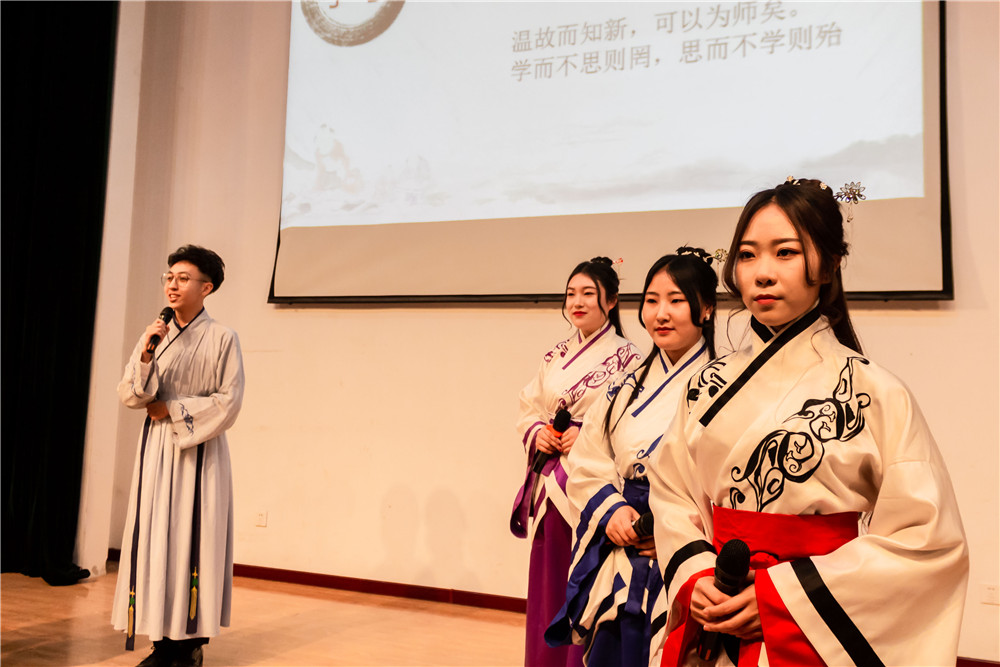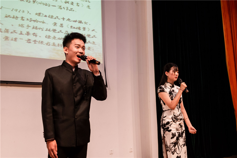 朗诵会在《团结在共青团旗帜下》拉开帷幕,朗诵者们饱含热情,慷慨激昂,精彩的演绎打动了在场的每一位观众,让同学们感受到了身为一名共青团员的使命和光荣。作品《“五四”之火》以五四运动的爆发为背景,以诗歌的形式再现了那段波澜壮阔的历史,深刻诠释了民主、科学、进步、爱国的五四精神。《父亲的家书——写给李万君的信》以父子对话的形式讲述了中车公司高级技师、“工人院士”“高铁焊接大师”李万君的故事,反映了他从普通工人成长为大国工匠的不平凡的历程。经典古诗朗诵《春江花月夜》《朱子语类》带领观众们穿越时空感受古典之美,吟诵协会的同学们带来的原汁原味的古调吟诵《江南》《短歌行》,在展现传统吟诵魅力的同时,也让同学们了解了更多的古人读书之法。