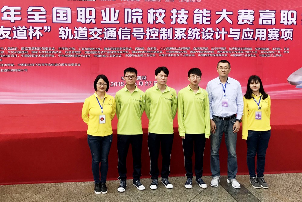 5月27日,由教育部主办的2018年全国职业院校技能大赛高职组“轨道交通信号控制系统设计与应用”赛项举行。本次比赛共有来自全国24个省、市、自治区71所院校的213名选手参加。经过激烈竞争,由我院铁道信号与信息工程系杨文虎主任领队、肖颖、鲜敏老师指导、徐晓辉、黄银、李功行等三名学生组成的团队获得大赛一等奖优异成绩。来自俄罗斯、韩国、肯尼亚、伊朗四个国家60名学生到现场观摩比赛。