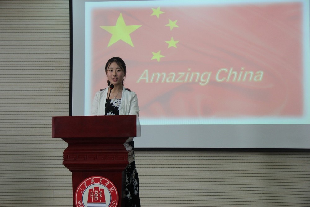 三、举办竞赛,弘扬爱国精神,抒发爱国情怀。5月10日,由团委和基础部(思政部)联合举办的英语演讲比赛迎来总决赛,来自学院八个系的33名同学,以Amazing China(《厉害了,我的国》)为主题,歌颂近年来祖国伟大成就,抒发爱国情怀。