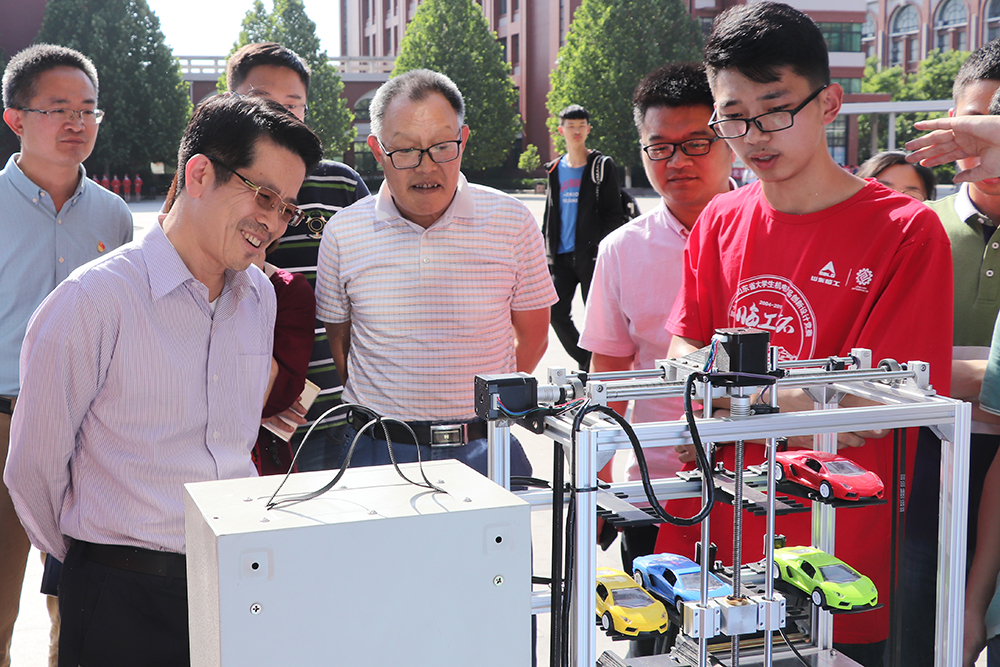 今年山东省大学生机电产品创新设计竞赛,学院师生努力拼搏,最终获2个一等奖、4个二等奖、5个三等奖好成绩。其中,由崔剑平、徐瑞霞老师指导,王福欣、贾磊、姜其澍、王玥、徐浩宇等五位同学制作的《神丰大枣收割机》,由张为宾老师指导,孙红磊、申龙、张城、刘凯瑞、尹子文等五位同学制作的《管道检测清理机器人》获本届大赛一等奖。《铁路多功能除雪检测探伤车》《自动化立体停车装置》《智能仓库管理》《基于人体感应的室内电气智能控制装置》等四个作品获大赛二等奖,《节能门锁》《智能全自动线材加工机》《智能节能路灯》《自动焊接装置》《全自动智能无尘黑板擦》等五个作品获大赛三等奖。