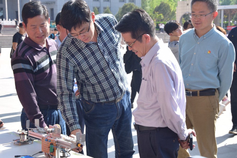 四、科创展览,以教育创新与新时代同频共振。进入中国特色社会主义新时代,培养时代需要的创新人才,以教育创新与新时代同频共振,成为每一所学校、每一位教育工作者的重要责任和使命。活动周期间,学院举办了科技创新成果展示活动。展出的30余件成果,全部为老师指导制作和学生自主研发,其中既有在省级大赛中摘金夺银的作品,也有首次亮相的新“玩意”。