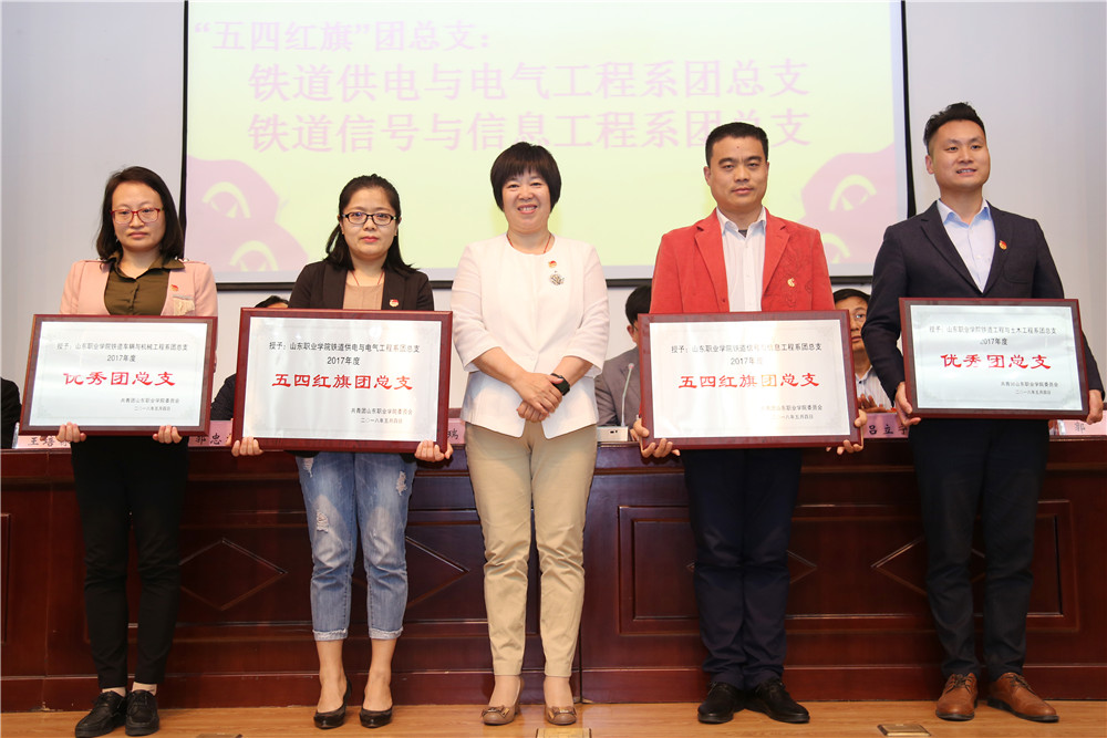 5月4日中午,2018年“五四”表彰大会暨新团员入团仪式入团仪式在图书行政楼西报告厅隆重举行,仪式在雄壮的国歌声中开始,现场气氛庄严而热烈。团委书记兼学生工作处处长王伟宣读了《关于表彰2017年度共青团工作先进集体和个人的决定》,授予铁道供电与电气系团总支、铁道信号与信息工程系团总支“五四红旗团总支”荣誉称号,授予铁道车辆与机械工程系团总支、铁道工程与土木工程系团总支“优秀团总支”荣誉称号,授予城轨交管1531班等33个团支部“五四红旗团支部”荣誉称号,授予铁道供电与电气工程系“红蓝青”志愿服务队等10个“十佳”青年志愿服务先进集体荣誉称号,授予伟德betvlctor1949源于英国跆拳道协会等39个社团优秀社团荣誉称号,此外还表彰了2017年度学院“十佳”共青团员、“十佳”共青团干部、“十佳”青年志愿者、优秀共青团员、优秀共青团干部、优秀青年志愿者,并为上述受表彰单位代表和个人颁发了奖牌与证书。