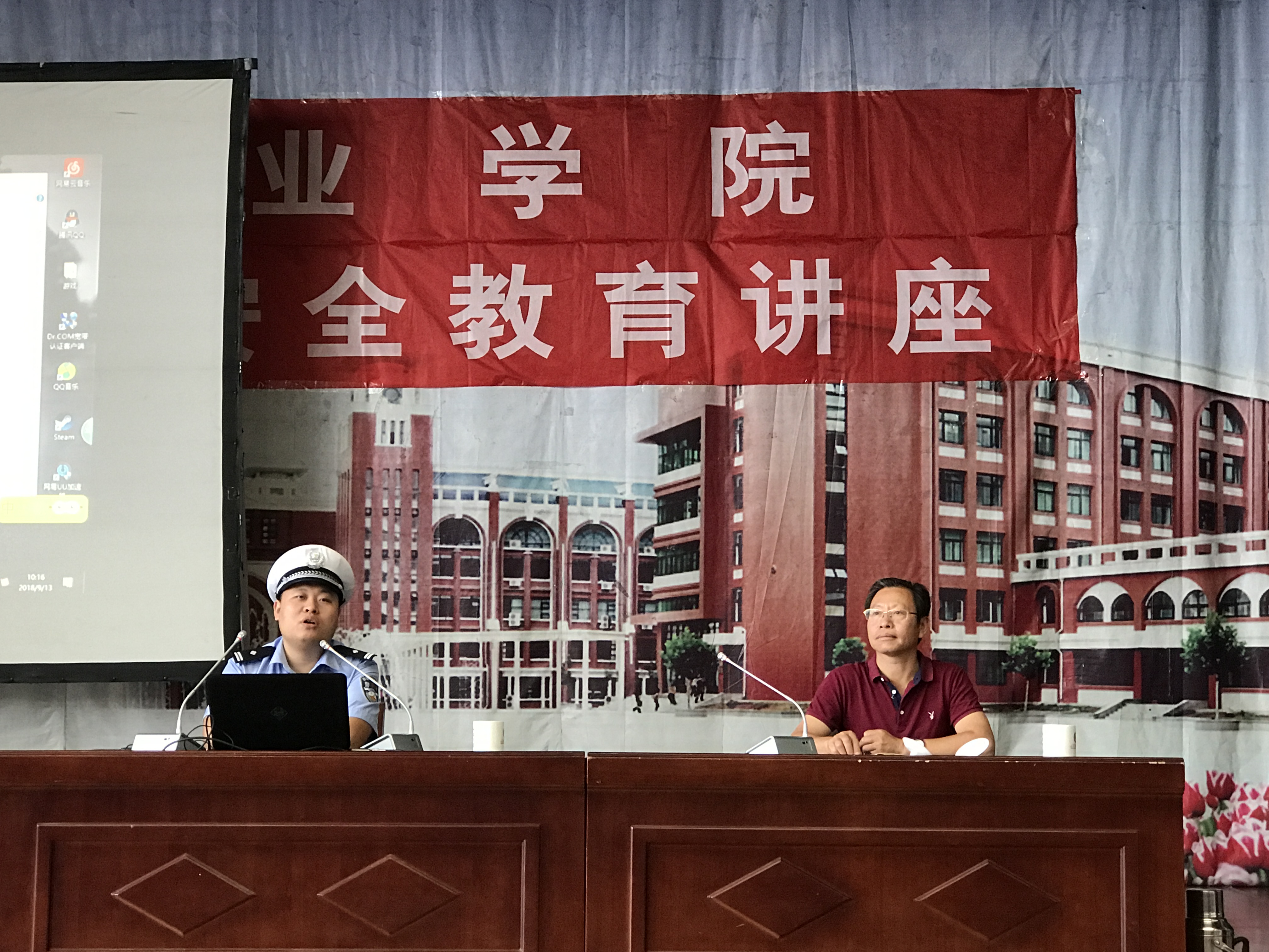为促进“平安校园”建设,提高新生的安全防范意识和自我保护能力,维护同学们的人身、财产安全。9月13-14日,学院邀请了公安、交通部门的专家,对2018级新生进行了安全教育讲座。活动由安全保卫处处长徐国礼主持。