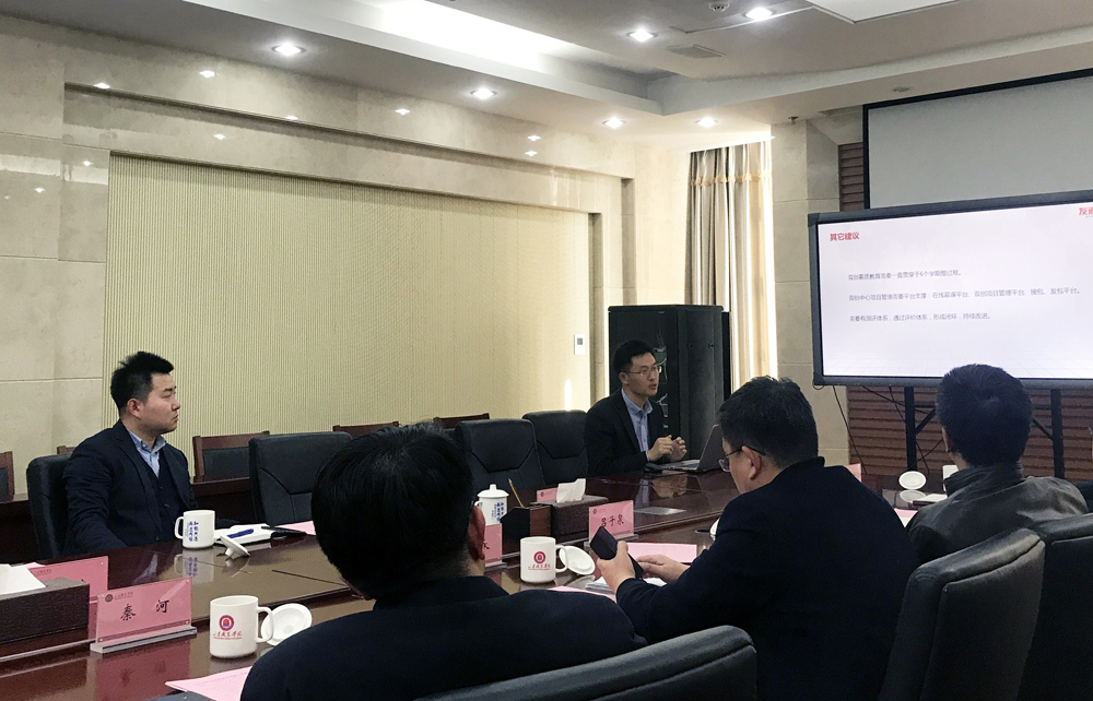 田荣华从科技成果转化和竞赛成果转化两方面提出了建设性建议,希望学院充分发挥轨道交通办学特色和优势,提升人才培养质量和水平,发挥好引领示范作用。高级副总裁刘延涛利用PPT详细介绍了创新创业校企合作方案,重点阐述了符合我院特色的双创教育人才培养模式改革和课程体系构建思路。