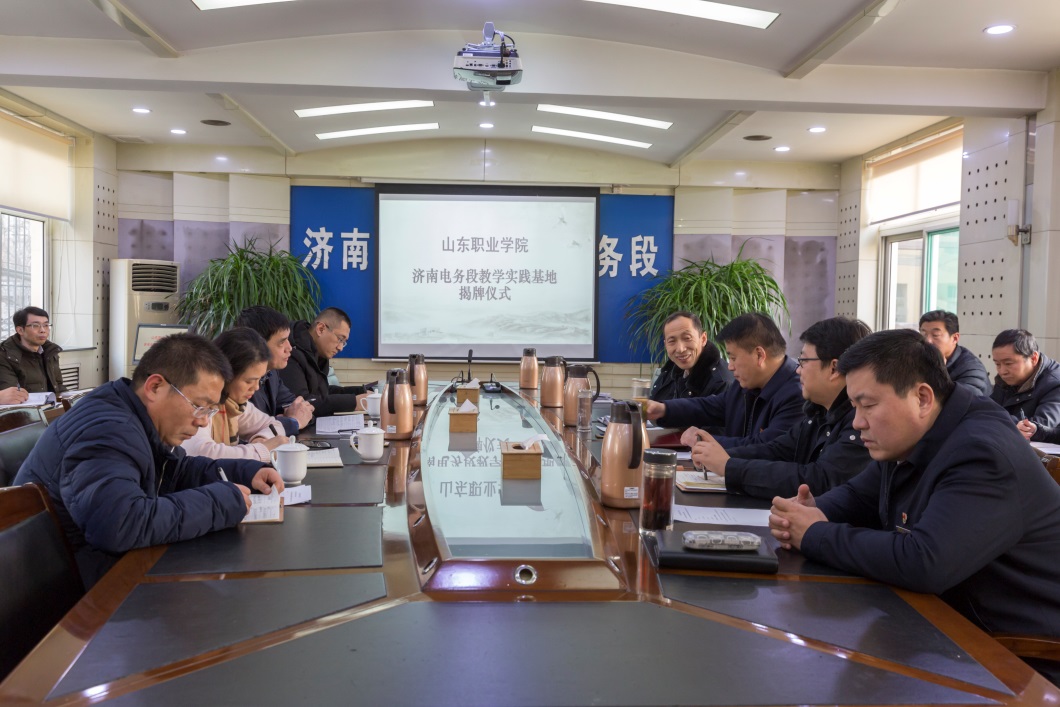 揭牌仪式上,济南电务段领导对我院毕业生表现给予了充分肯定,就铁道信号用人需求趋势、济南电务段生产组织特色、职工培训等作了详细介绍,双方就如何进行整建制顶岗实习进行了积极探讨。济南电务段表示,愿意为学院提供实习场地、设备、技术、师资方面的支持,完成认知实习和顶岗实习等教学实践活动。同时双方就校企共同开展人才培养、技术攻关、横向课题等方面进行了深入探讨。