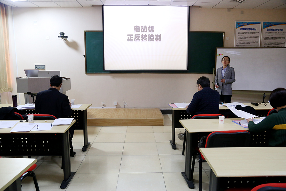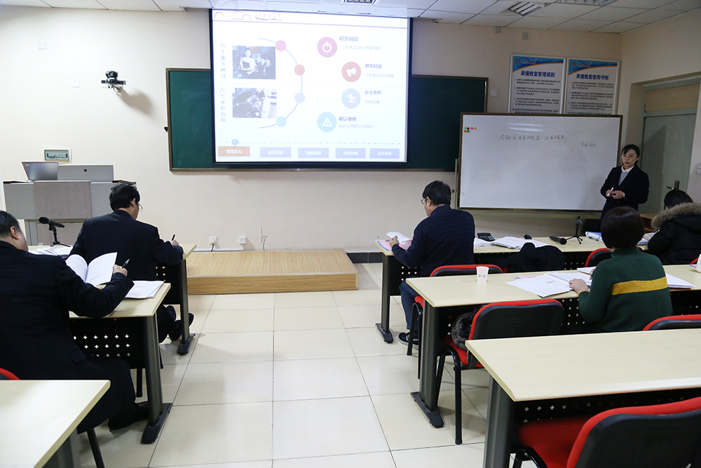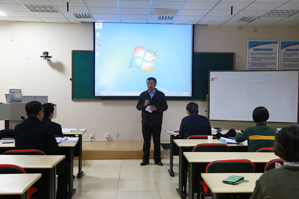 比赛开始,学院副院长郭鹏讲话,希望参赛选手们通过本次比赛锻炼教学能力,提升教学素质,并鼓励选手们发挥最佳水平,为山东省第六届“超星杯”高校青年教师教学比赛做好准备。