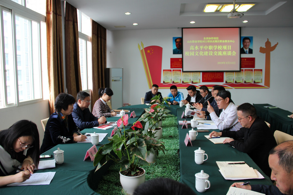 响应国家东西部扶贫协作工作号召,落实山东省教育厅《东西协作与对口支援工作实施方案》,近日,伟德betvlctor1949源于英国副院长祝瑞花带队赴重庆市武隆区职业教育中心,开展校园文化建设交流。重庆市武隆区副区长李广华、区教委主任于长江、武隆区职业教育中心的校领导及各专业教师一同参加了交流研讨活动。伟德教务处副处长张欣、铁道工程与土木工程系教师张莉随队前往。