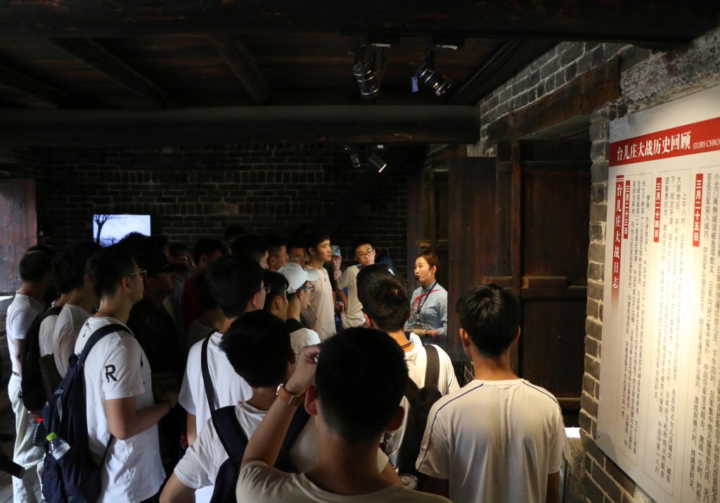 在台儿庄古城,同学们参观了台儿庄战役遗址,感受到了惨烈的战争场景,对中国军人不畏牺牲、勇敢作战、为国捐躯的精神留下了深刻的印象。在台儿庄大战纪念馆,同学们认真学习了台儿庄战役发生发展的整个过程,从淮河阻击战、临沂反击战、滕县保卫战到台儿庄歼灭战,每次战役中国军人奋勇杀敌,这些都激发了同学们的爱国主义热情。通过学习,使同学们提升了个人心灵与人文素质,懂得当下的一切都是革命先烈抛头颅洒热血为我们换来的。