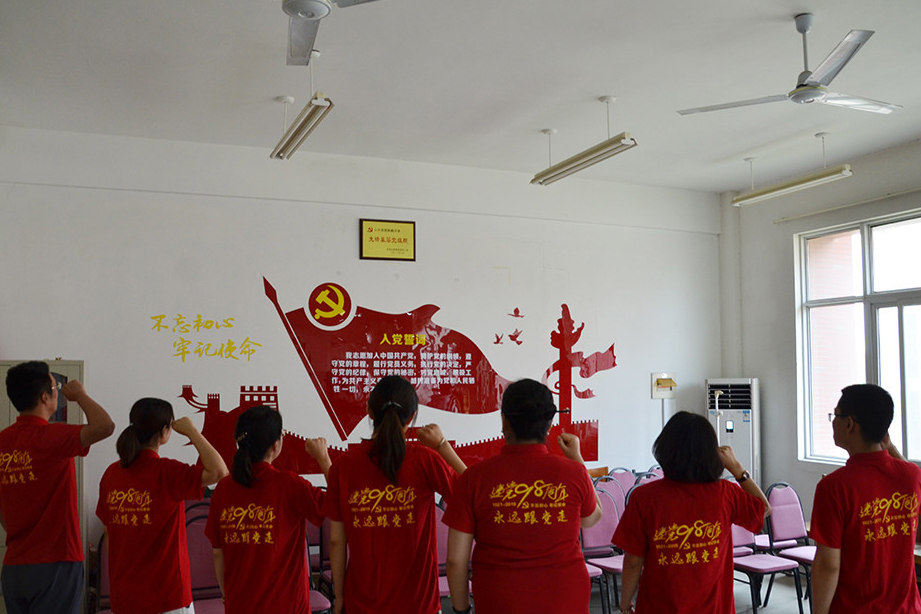 6月28日,学生党支部举办了重温入党誓词宣誓活动。党员面向党旗,紧握右拳,庄严宣誓,接受精神洗礼。大家一致表示,今后一定会积极发挥党员的先锋模范作用与带头作用,为新时代中国特色社会主义事业发展贡献力量。